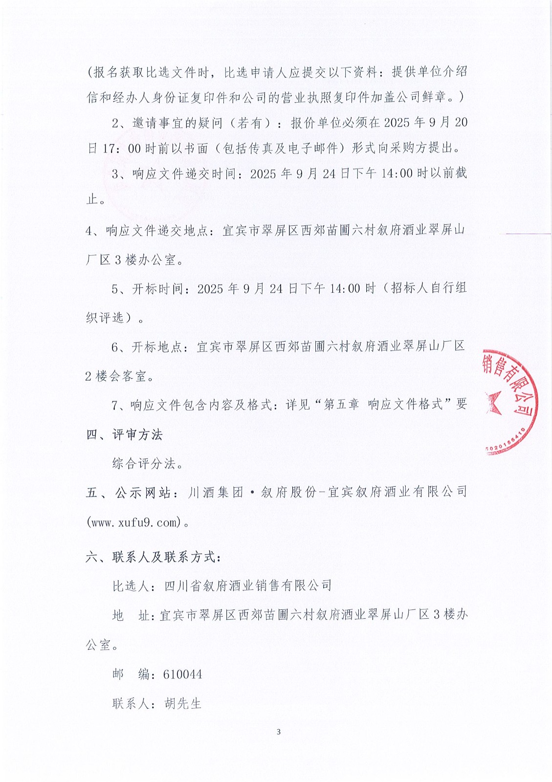 四川省宜賓市敘府酒業(yè)股份有限公司草簾采購(gòu)項(xiàng)目比選結(jié)果公示